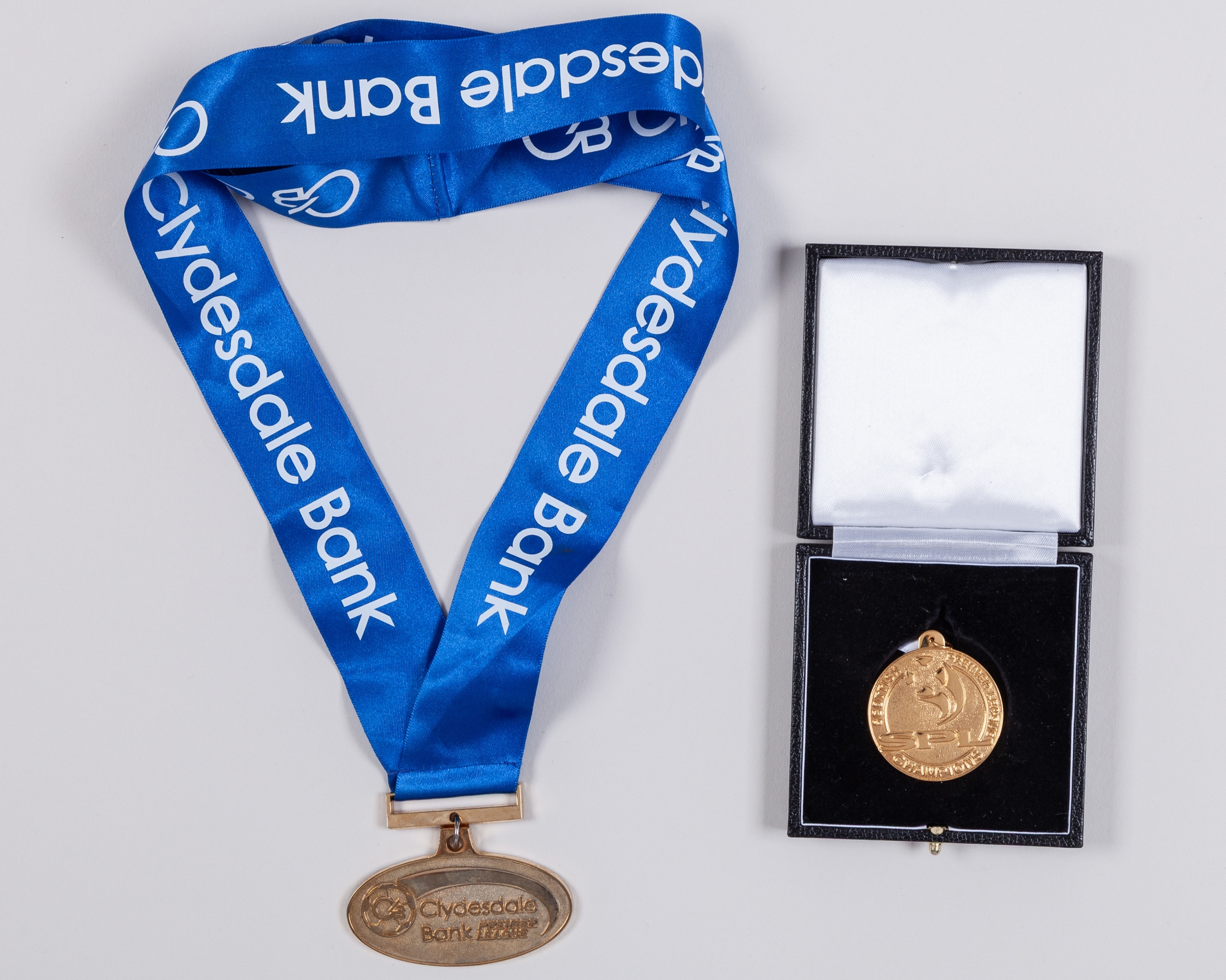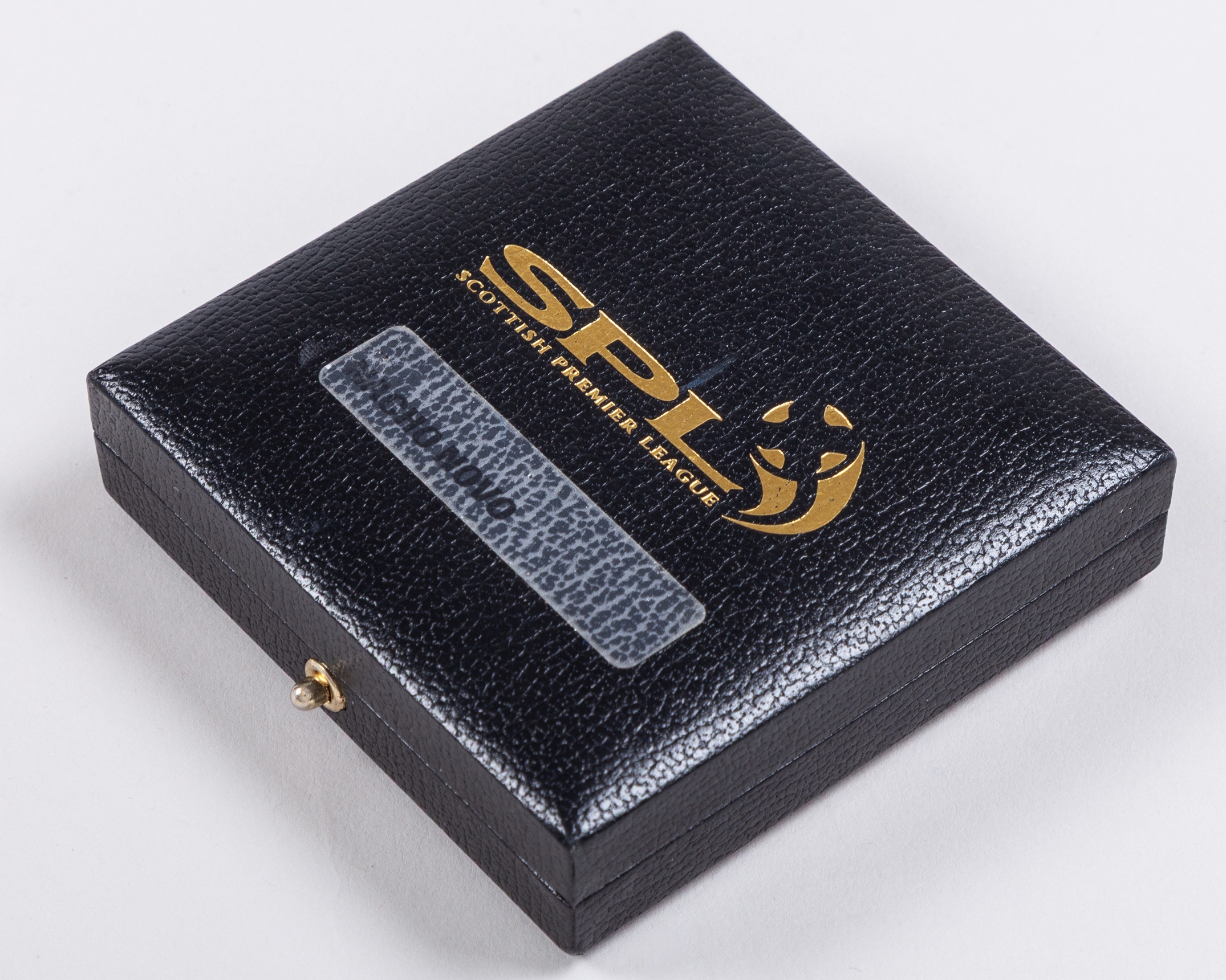 Nacho Novo 9ct gold Rangers Scottish Premier League Championship medal, 2009-10, the obverse inscribed SPL SCOTTISH PREMIER LEAGUE CHAMPIONS, the reverse lettered CHAMPIONS Season 2009-10, Nacho Novo, in original fitted case, with yellow-metal sponsors celebration medal